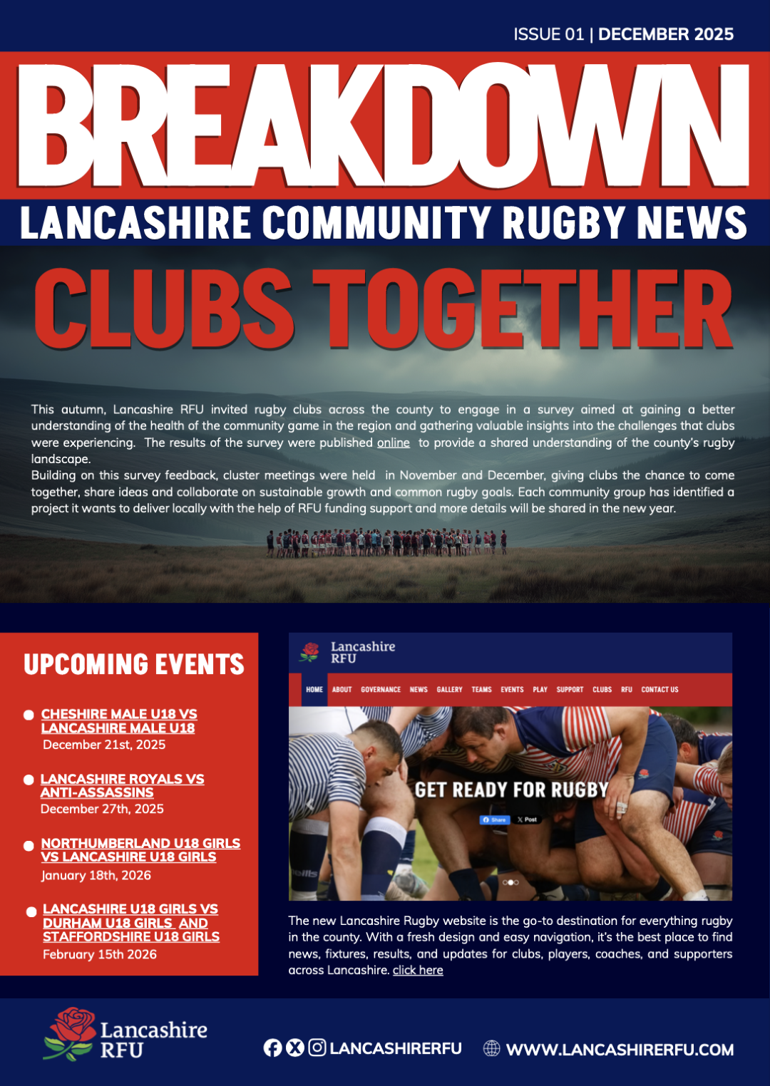 Lancashire RFU are dedicated to supporting clubs and volunteers to grow and develop the community game so the county remains a region where Rugby thrives.